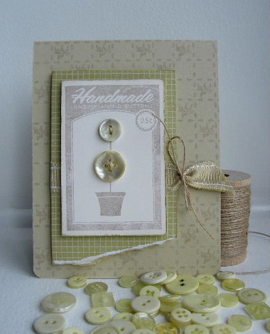 I love the background leaves on this card. I was unsure what color I wanted to use so I tried New Leaf. I wasn't happy with the way that looked so I cleaned my stamp and tried Versamark ink. Some of the New Leaf ink mixed with the Versamark and added just the right hint of green.